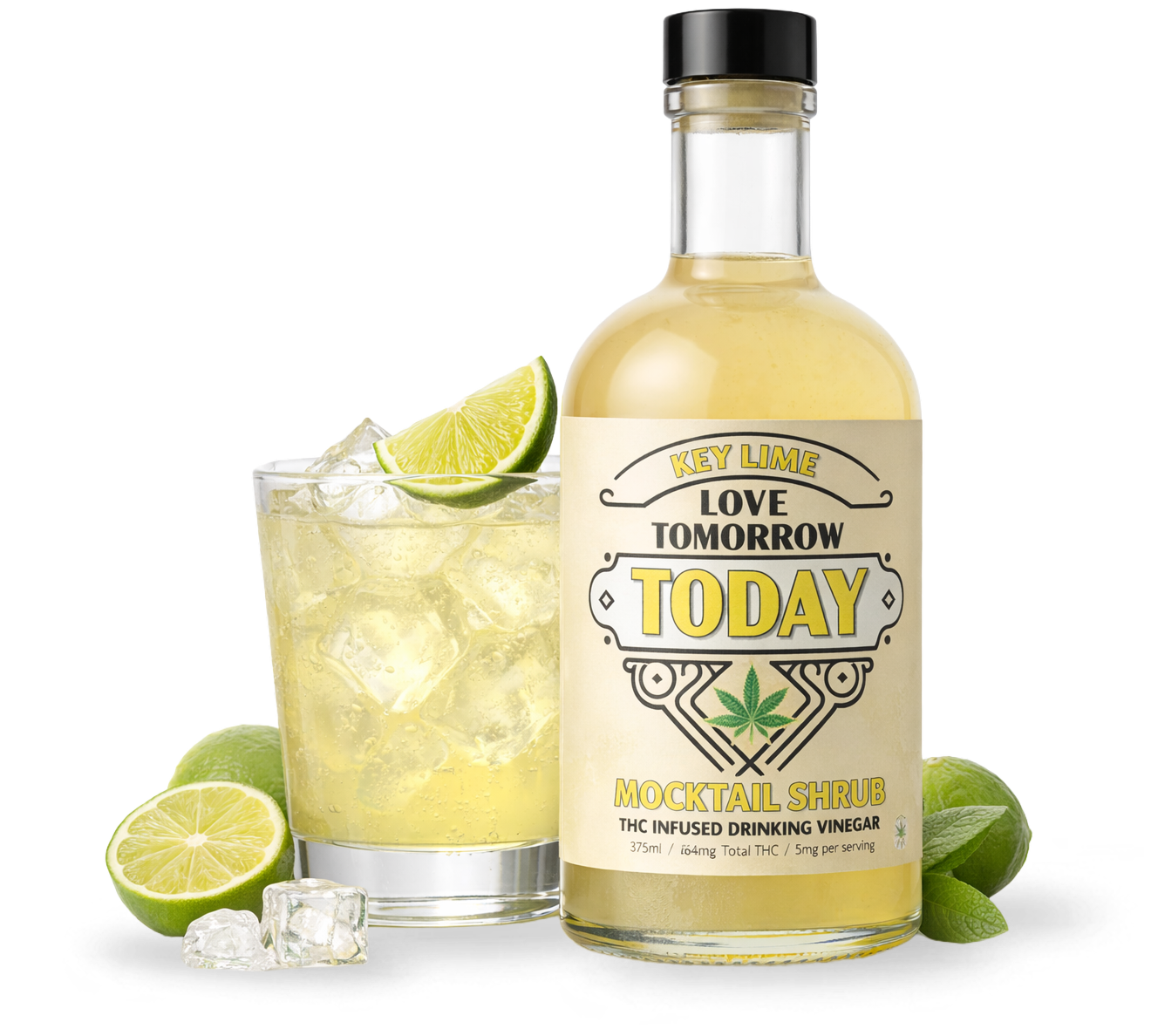 Bright, tart key lime shrub crafted as a cocktail and mocktail infused with hemp-derived THC for a smooth, social buzz without alcohol.